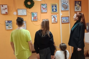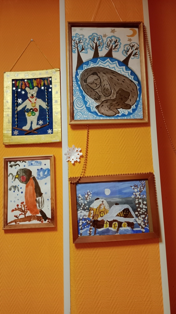 На втором этаже отдела семейного досуга открыта выставка работ участников кружка ДПТ «Волшебный сундучок» (руководитель Кейшева Н.А.) на новогоднюю тему. Здесь можно увидеть не только Деда Мороза, но и красивые зимние пейзажи, и зверей, и птиц, и символ наступающего года –