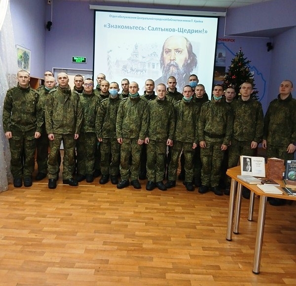 25 декабря 2025 года сотрудники Центральной городской библиотеки им. Л. Крейна представили военнослужащим срочной службы литературную панораму «Знакомьтесь: Салтыков-Щедрин!». Мероприятие, посвященное 200-летию со дня рождения знаменитого русского писателя, состоялось в рамках молодежного социокультурного проекта «Непропущенное чтение: общение с Великими» и проекта «Российской истории славные даты.