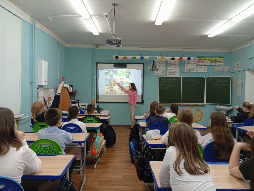 «Что такое хорошо и что такое плохо?» в рамках профилактики правонарушений. Культорганизатор отдела семейного досуга МБУК ДК «Строитель» пгт Сафоново Шейкина Е.А. показала ребятам презентацию, в которой были изображены хорошие и плохие поступки. Ученики разбирали понятия - честность и ложь, добро и зло. Узнали, что такое Закон, и за какие поступки предусмотрено наказание. Ребятам понравилось общаться на такие серьезные темы. В заключение ведущая предложила школьникам украсить дерево Добрых дел, наклеить цветы и написать на них добрые слова. А потом на дереве вырастут плоды - добрые дела. Благодарим за сотрудничество учителей 4 «А» и «Б» класса МБОУ ЗАТО г. Североморск «СОШ №2» Климок Жанну Вадимовну и Старикову Людмилу Николаевну.