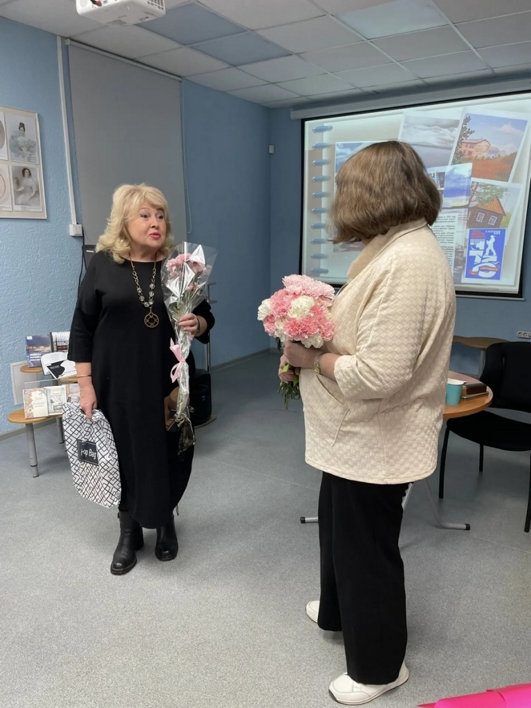 В зале было шумно и необычайно красиво от букетов цветов, которые принесли друзья и коллеги по творческому цеху, чтобы поздравить автора.