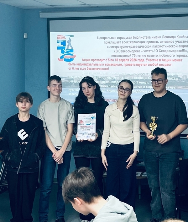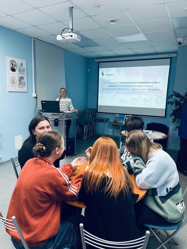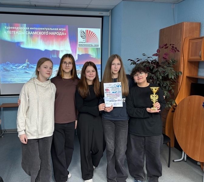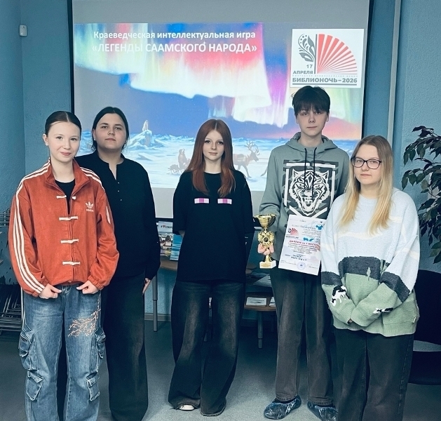 17 апреля 2026 года игровой сезон в клубе интеллектуальных игр "СовиниУм" Центральной городской библиотеки им. Л. Крейна завершился краеведческой интеллектуальной игрой «Легенды саамского народа», посвященной Дню коренных малочисленных народов Российской Федерации. Мероприятие состоялось в рамках Всероссийской социокультурной акции в поддержку чтения «Библиосумерки 2026».