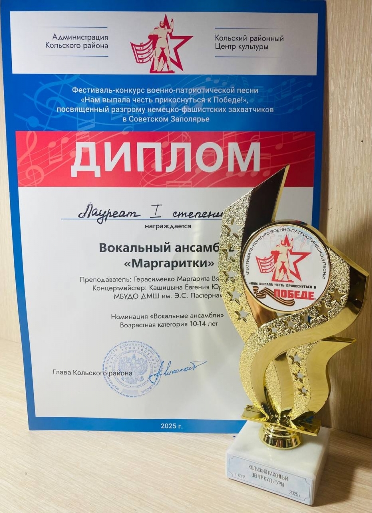 Поздравляем с победой в конкурсе вокальный ансамбль ДМШ им. Э.С. Пастернак «Маргаритки» (руководитель Герасименко М.В., концертмейстер Кашицына Е.Ю.)