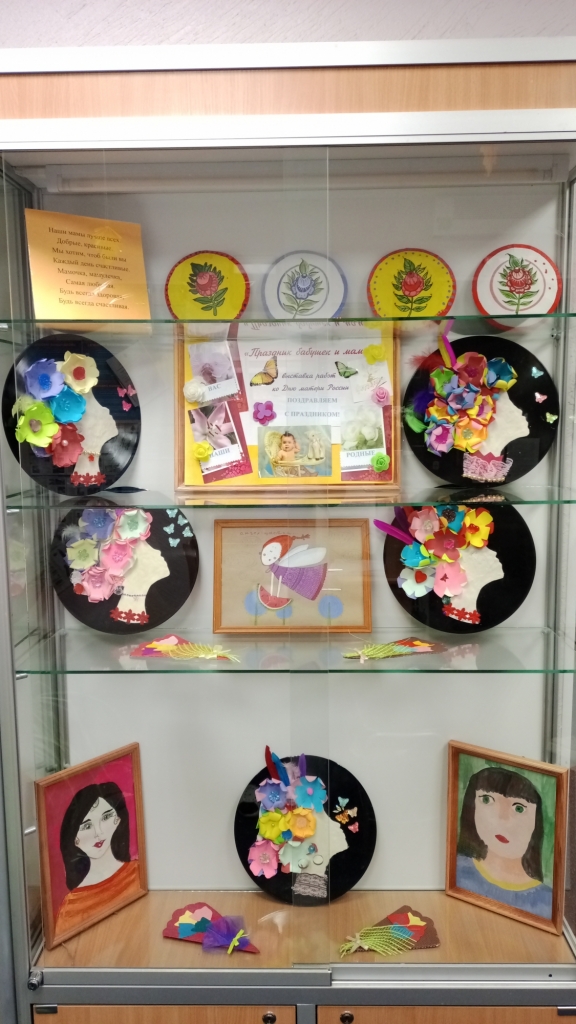 Выставка творческих работ "Праздник бабушек и мам" кружка ДПТ "Волшебный сундучок" ко Дню матери России