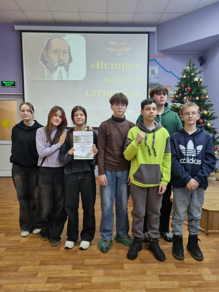 25 января 2026 года в рамках молодежного социокультурного проекта "Непропущенное чтение: общение с Великими" знатоки североморского клуба "СовиниУм" сыграли в литературно-интеллектуальную игру "История одного сатирика". Мероприятие прошло в Центральной городской библиотеке им. Л. Крейна и было посвящено 200-летию со дня рождения М. Е. Салтыкова-Щедрина.