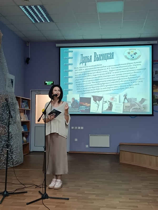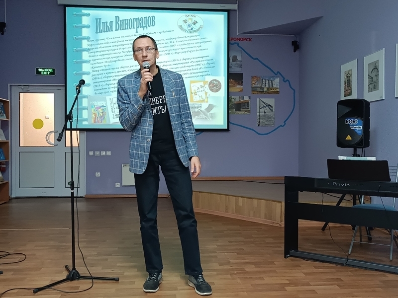 Поздравить североморцев с Днем поэзии города приехали давние друзья библиотеки – члены Союза писателей России Илья Виноградов, Марина Чистоногова, Елена Деревякина, Дарья Высоцкая, а также представители областного ЛИТО «Мурман», которые представили свои произведения и прочли стихи Североморских авторов.