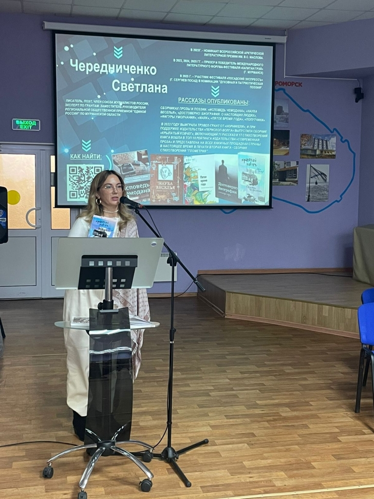 Гостей порадовало выступление мурманского поэта, прозаика и члена Союза журналистов России Светланы Чередниченко. Её автобиографические рассказы из книги «Крылатый ковчег» вызвали неподдельный интерес, особенно рассказы о работе на руднике подземных работ «Каула-Котсельваара». Светлана поделилась творческими планами и прочитала отрывок из рассказа «Новая жизнь Зои Карбонопсины», который станет основой нового романа.
