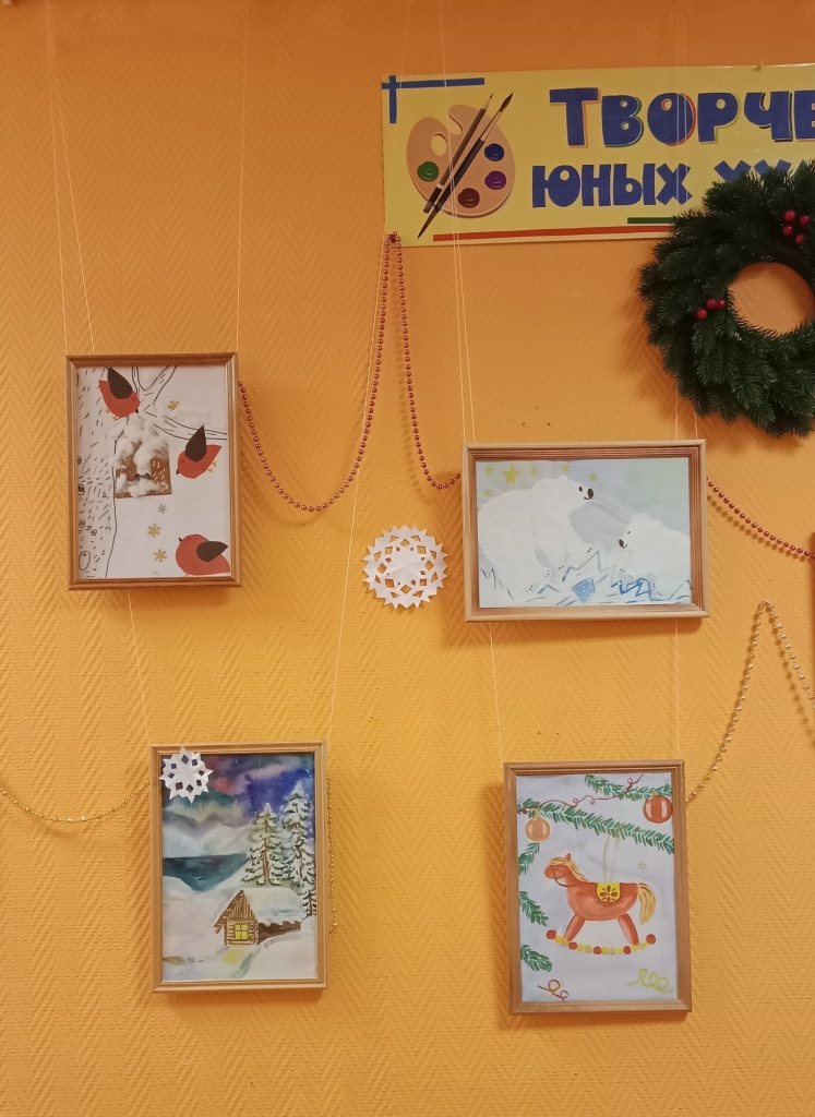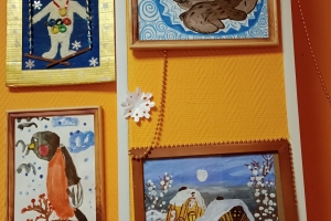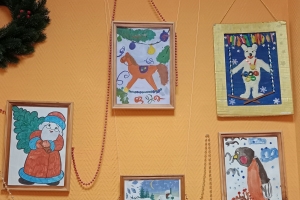 На втором этаже отдела семейного досуга открыта выставка работ участников кружка ДПТ «Волшебный сундучок» (руководитель Кейшева Н.А.) на новогоднюю тему. Здесь можно увидеть не только Деда Мороза, но и красивые зимние пейзажи, и зверей, и птиц, и символ наступающего года –