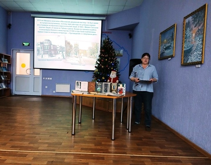 Участники мероприятия узнали о жизненном и творческом пути Михаила Евграфовича Салтыкова-Щедрина, поговорили о проблемах, поднимаемых им в своих произведениях, посмотрели отрывки из документальных фильмов, рассказывающих о жизни и творчестве классика русской литературы, и послушали отрывки из известных «Сказок для детей изрядного возраста». Привлекли внимание присутствующих и издания, представленные на книжной выставке «М. Е. Салтыков-Щедрин: писатель и человек».