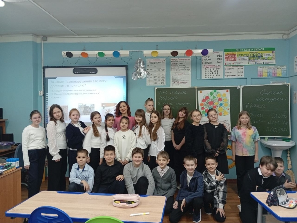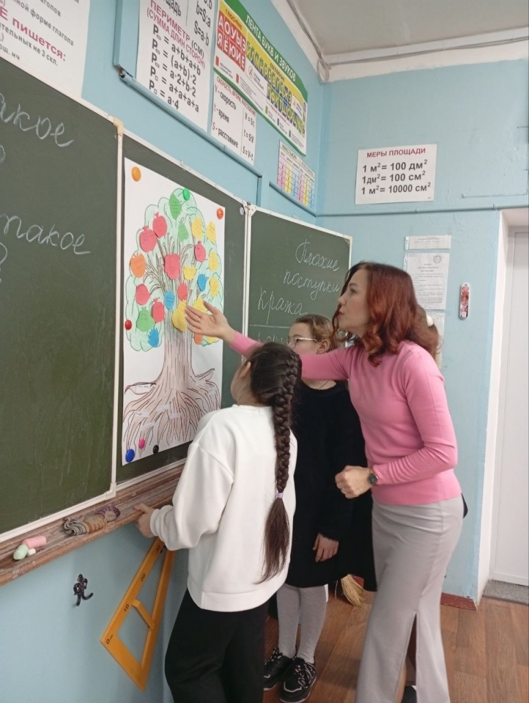 «Что такое хорошо и что такое плохо?» в рамках профилактики правонарушений. Культорганизатор отдела семейного досуга МБУК ДК «Строитель» пгт Сафоново Шейкина Е.А. показала ребятам презентацию, в которой были изображены хорошие и плохие поступки. Ученики разбирали понятия - честность и ложь, добро и зло. Узнали, что такое Закон, и за какие поступки предусмотрено наказание. Ребятам понравилось общаться на такие серьезные темы. В заключение ведущая предложила школьникам украсить дерево Добрых дел, наклеить цветы и написать на них добрые слова. А потом на дереве вырастут плоды - добрые дела. Благодарим за сотрудничество учителей 4 «А» и «Б» класса МБОУ ЗАТО г. Североморск «СОШ №2» Климок Жанну Вадимовну и Старикову Людмилу Николаевну.