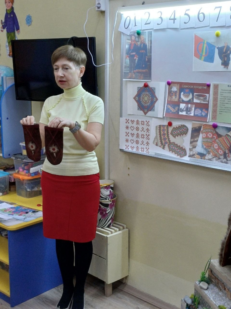 Специалисты отдела семейного досуга МБУК ДК «Строитель» пгт Сафоново провели 6 февраля интересный мастер-класс «Саамская рукавичка» к Международному дню саамов для воспитанников МБОУ ЗАТО г. Североморск «СОШ №2» (д/с) Методист отдела семейного досуга рассказала детям о быте этого народа, показала иллюстрации саамской одежды, жилища, оленьих упряжек. А руководитель кружка ДПТ "Волшебный сундучок" показала, как сделать яркую поделку - варежку с саамским орнаментом.