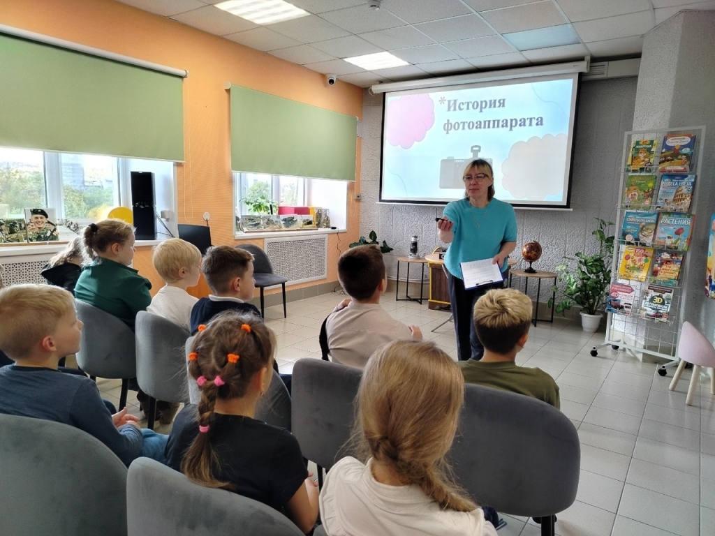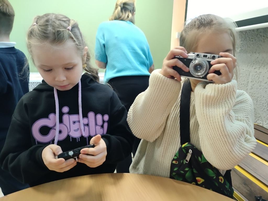 В ходе мероприятия ребята узнали о том, как появился первый фотоаппарат, какие трудности стояли перед его изобретателями, а также поговорили о том, что до появления фотографии люди запечатлевали свои образы и важные события с помощью художников, создававших портреты и картины.
