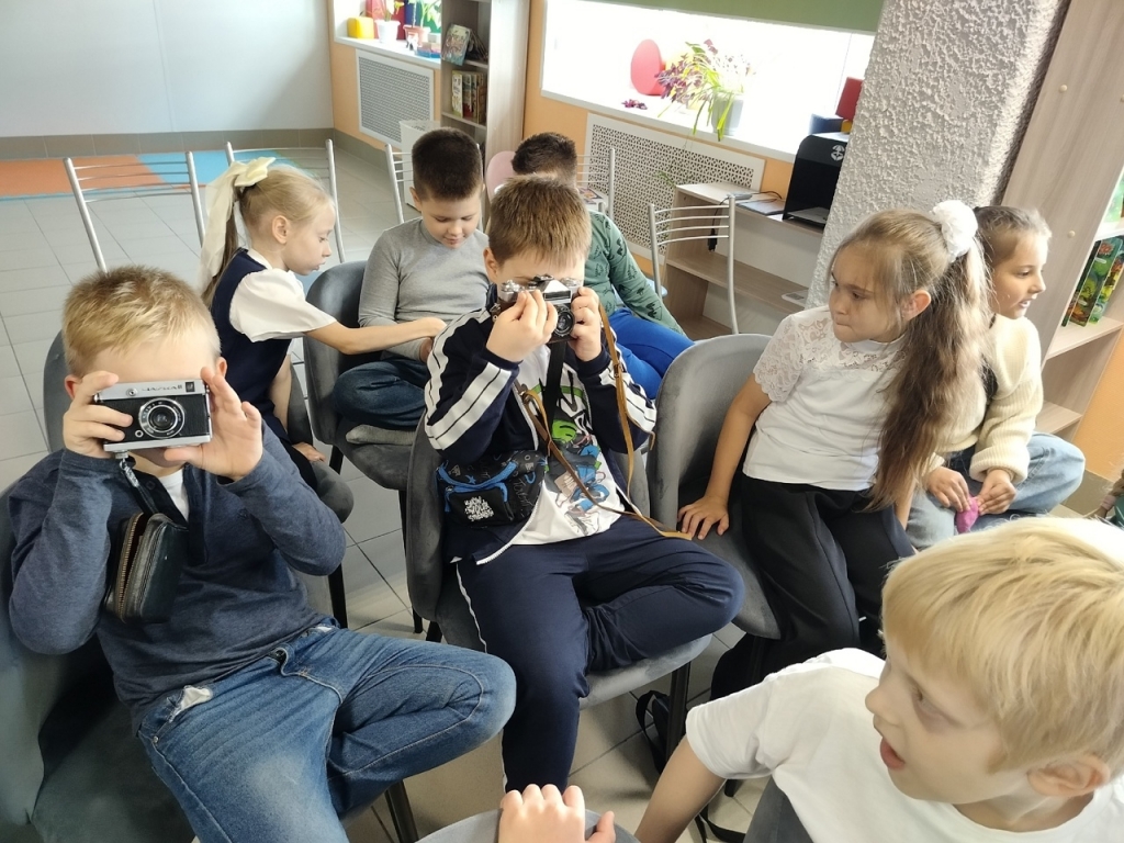 Особый интерес вызвали экспонаты, которые принесла с собой Наталья Николаевна. Дети с любопытством рассматривали старинные фотоаппараты, слушали об их устройстве и принципе работы, а возможность подержать экспонаты в руках, да еще и попробовать фотографировать вызвала настоящий восторг.