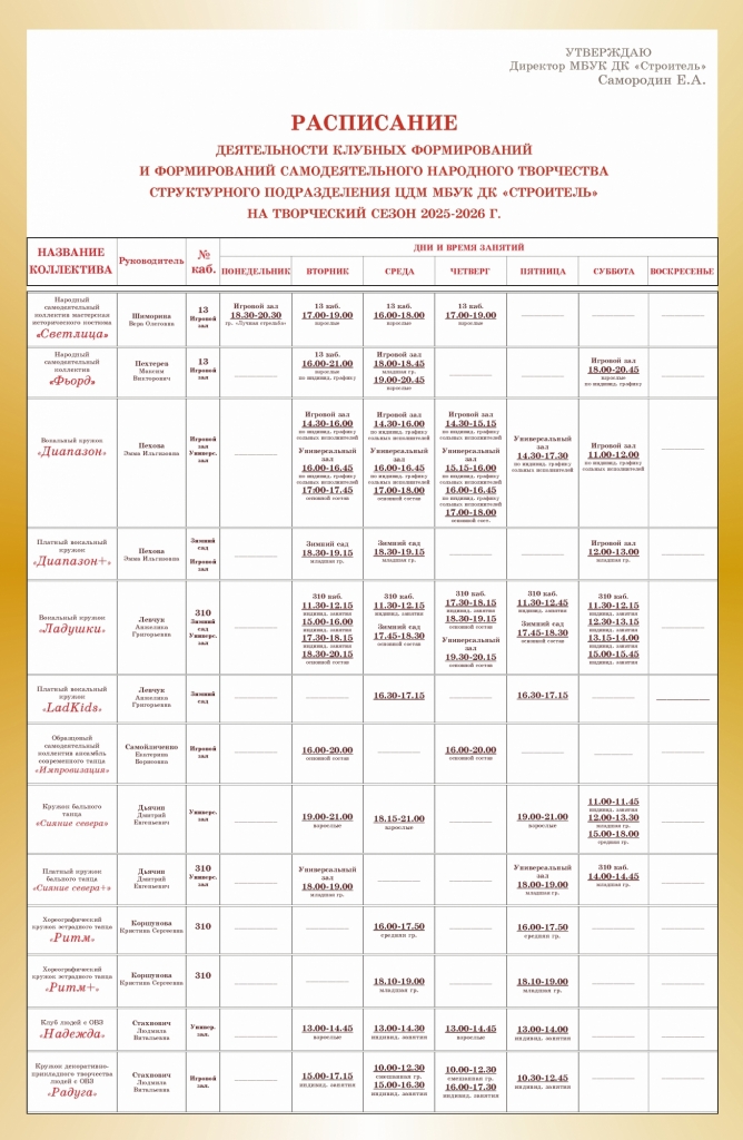 МБУК ДК «Строитель» устанавливает льготы в размере 50% в оплате услуг, предоставляемых платными клу бными формированиями следующим категориям участников: