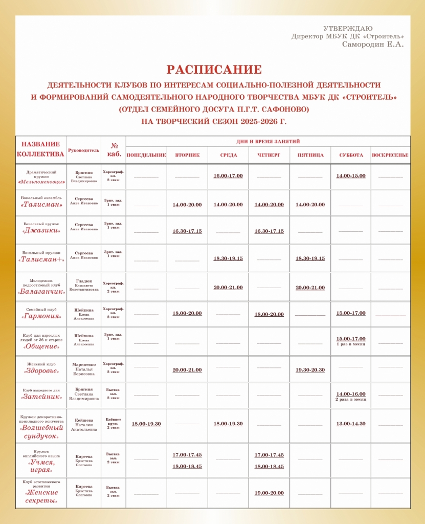 - создание и организация работы клубных формирований по интересам (коллективов, студий и кружков художественного любительского творчества, народных любительских театров, любительских клубов и т.д.);