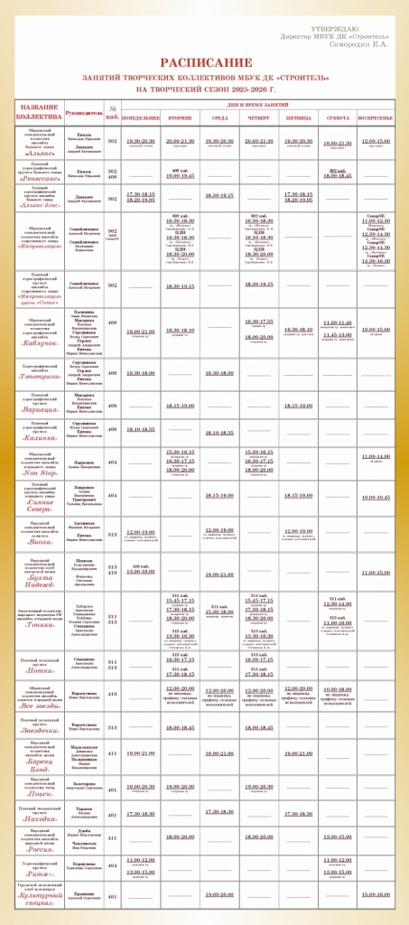 ДК "Строитель" предоставляет населению города разнообразные услуги социально-культурного, просветительского, развлекательного характера и создаёт условия для занятий народным художественным творчеством: